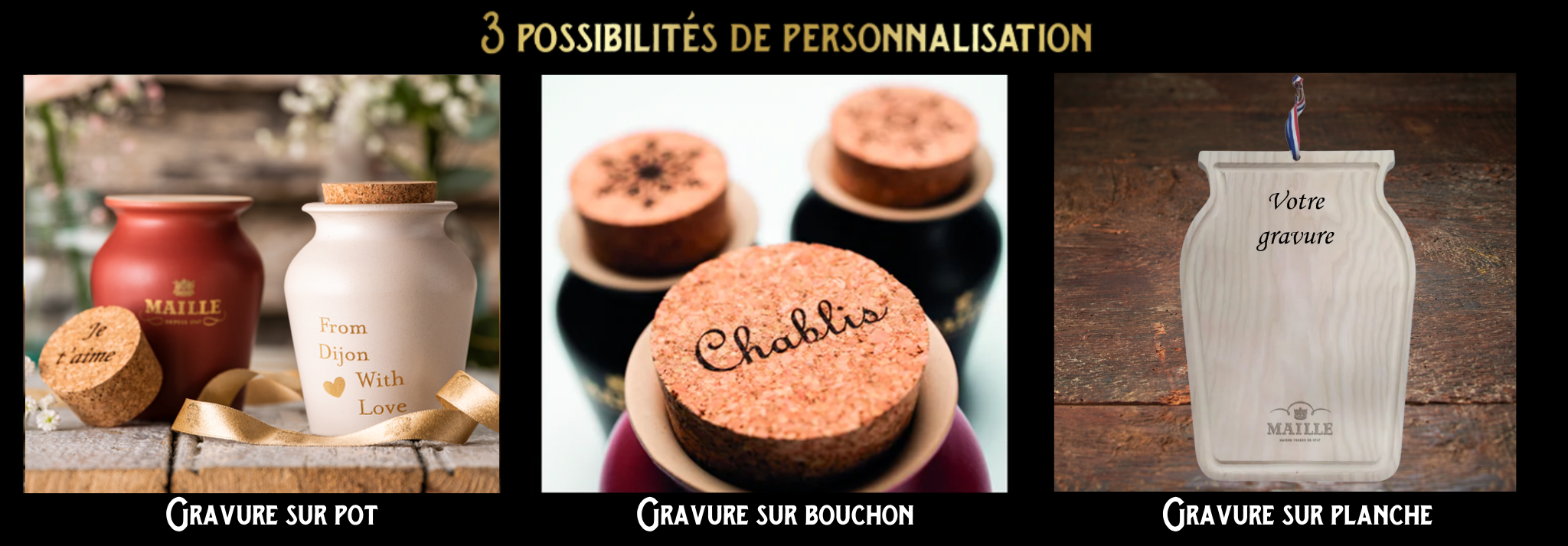 Gravez votre message sur nos élégants pots en grès, fabriqués en Bourgogne : une pièce authentique qui porte votre attention jusque dans les moindres détails. Sélectionnez dans notre catalogue un dessin à graver sur le bouchon pour ajouter une note créative et originale. Amusez-vous à personnaliser votre planche pour une touche encore plus personnelle. C’est l’occasion parfaite de rendre vos cadeaux de Noël, d'anniversaire ou de Saint-Valentin inoubliables.